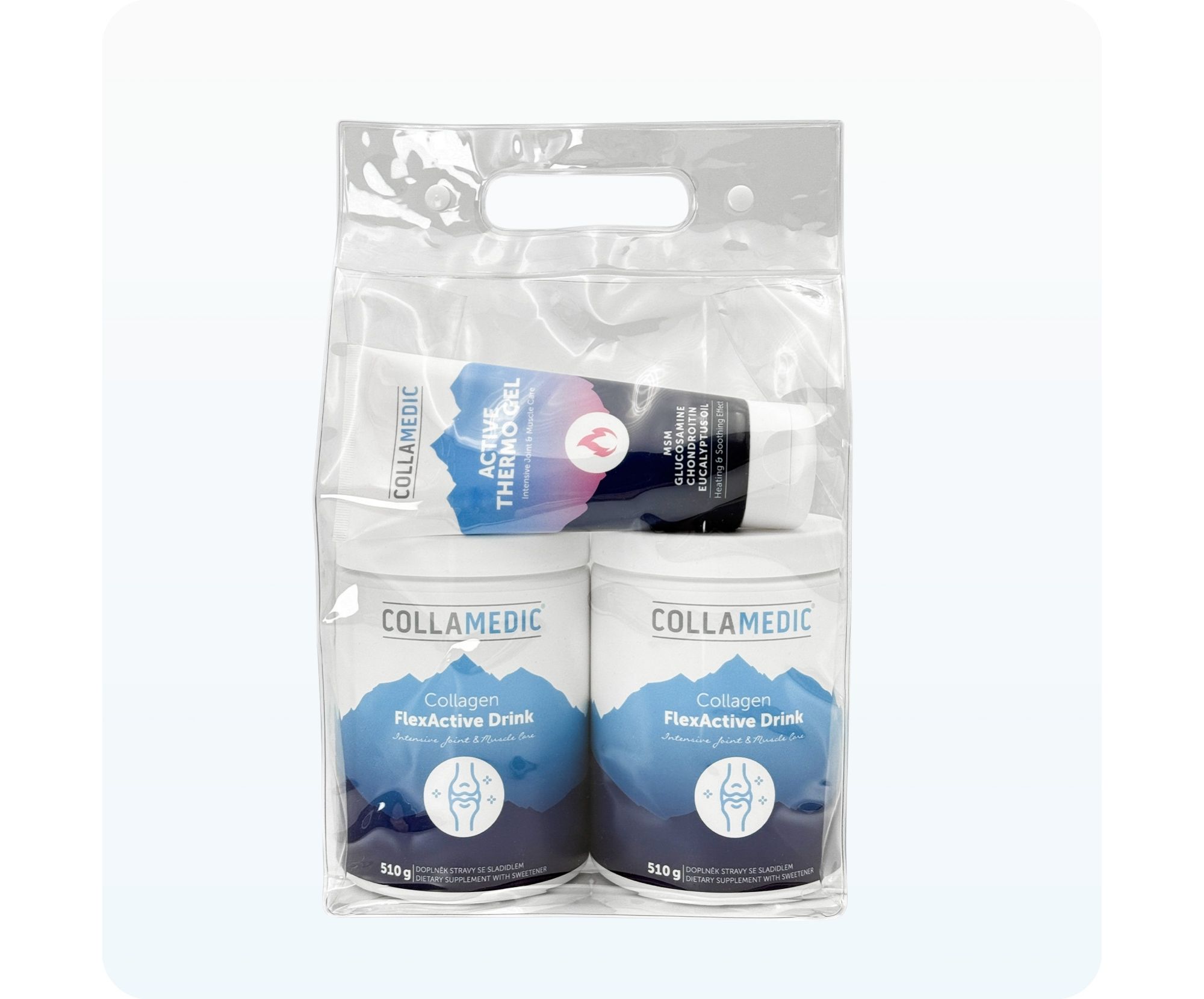 Dopřejte svým kloubům komplexní péči. Výhodná sada obsahuje 2× COLLAMEDIC® Flex Active Drink pro výživu chrupavek a vazů. Jako DÁREK získáte COLLAMEDIC® Hřejivý gel 200 ml – pro úlevu svalům a kloubům.
