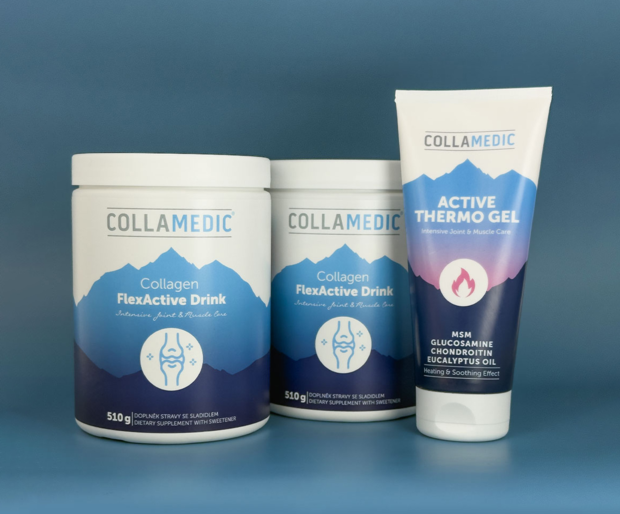 COLLAMEDIC® Collagen FlexActive drink – sada na klouby s hřejivým gelem ZDARMA