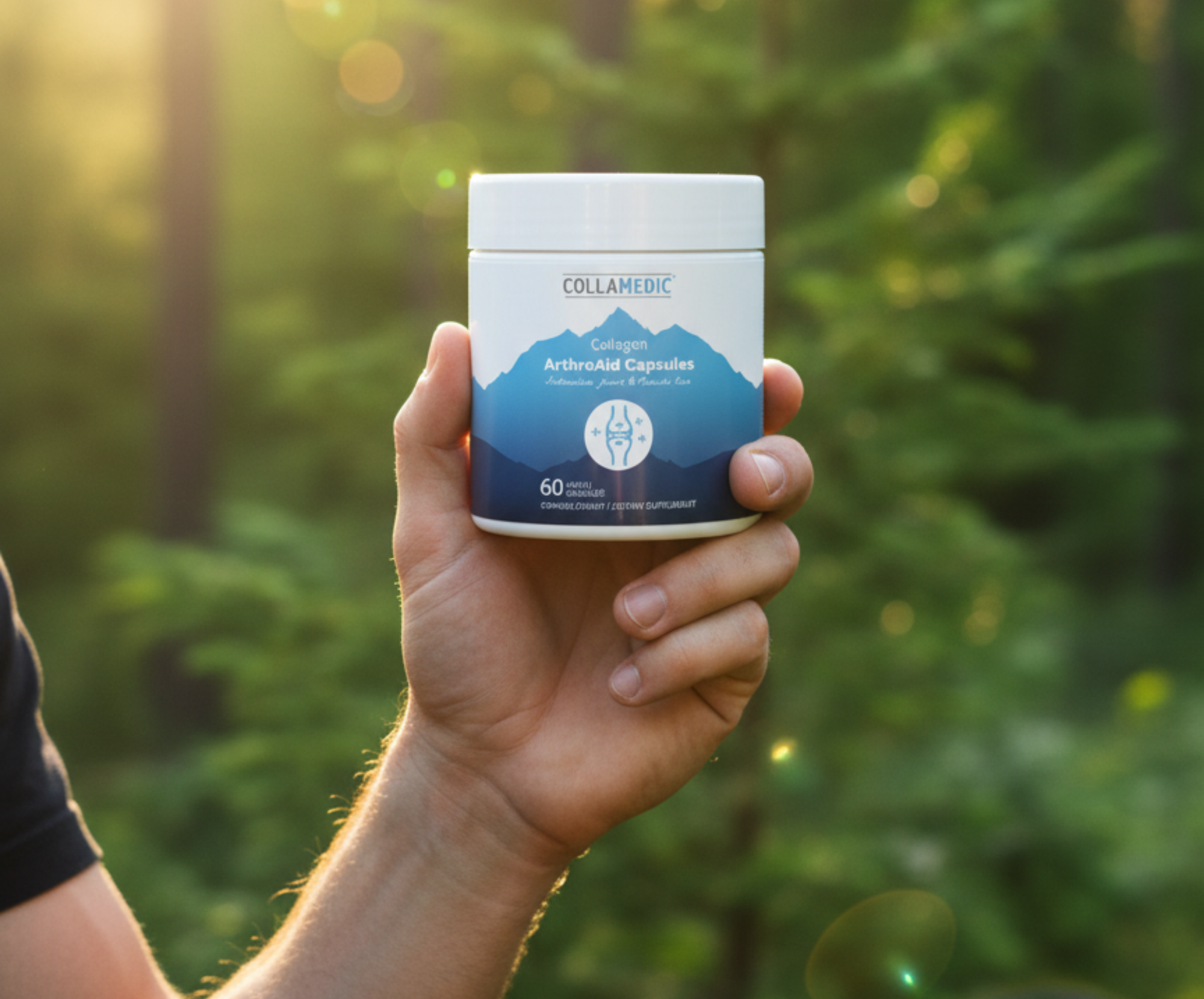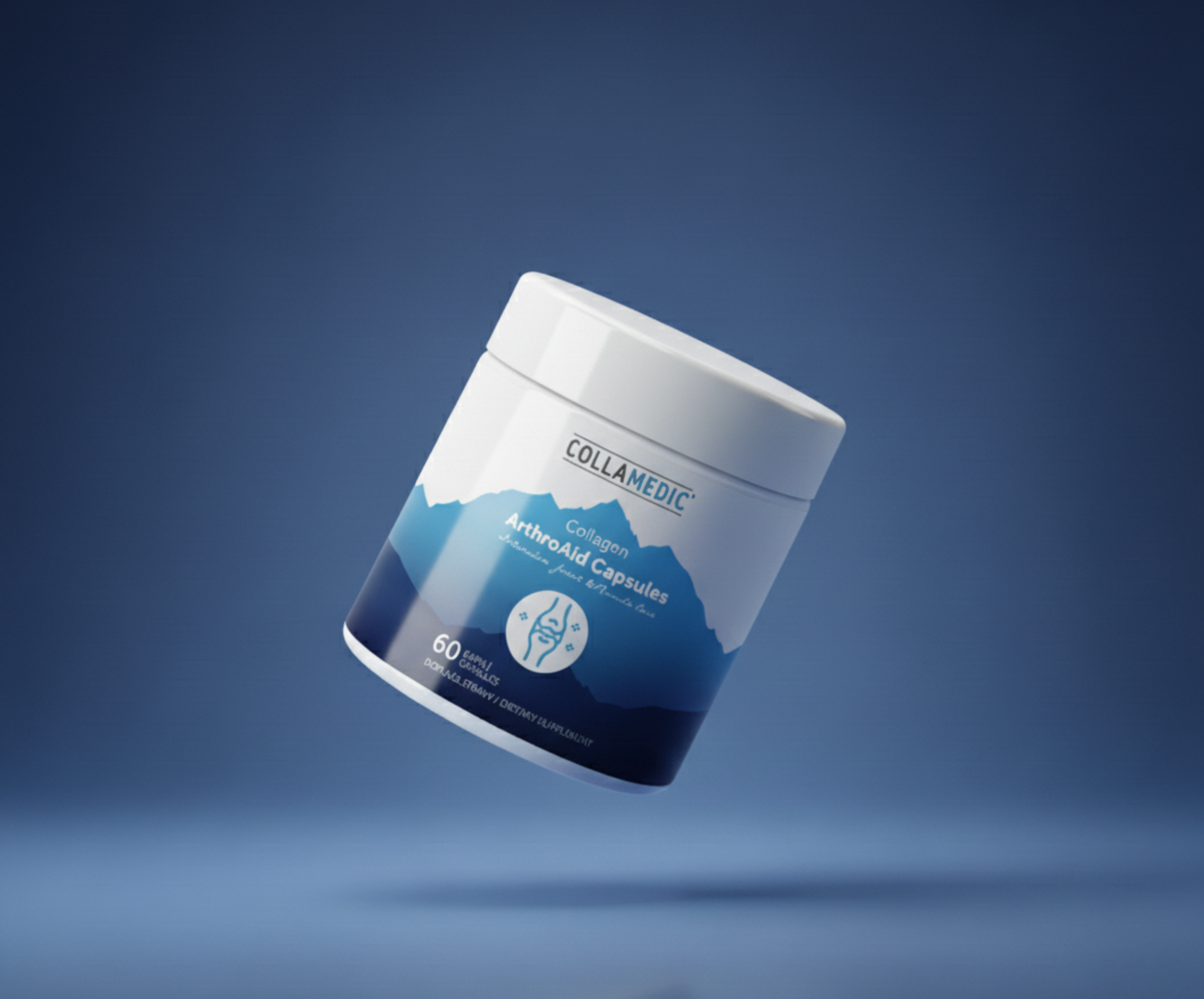 COLLAMEDIC® Collagen ArthroAid je vysoce účinný doplněk stravy pro osoby, které trápí bolesti, záněty nebo opotřebení kloubů. Díky cílenému složení pomáhá potlačit zánět, zmírnit bolest a současně aktivně regenerovat a vyživovat kloubní chrupavku. Ideální v kombinaci s nápojem Collagen FlexActive.