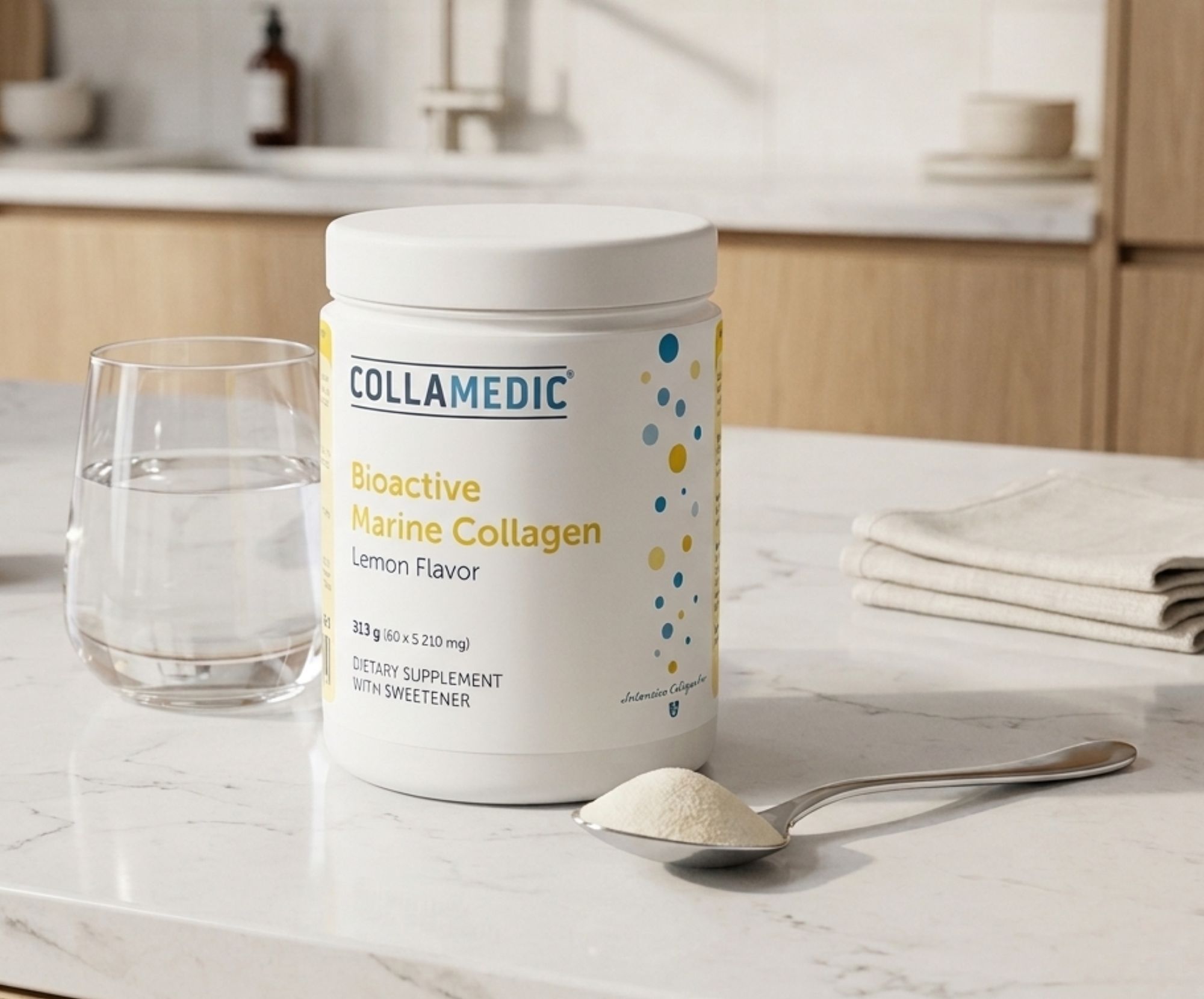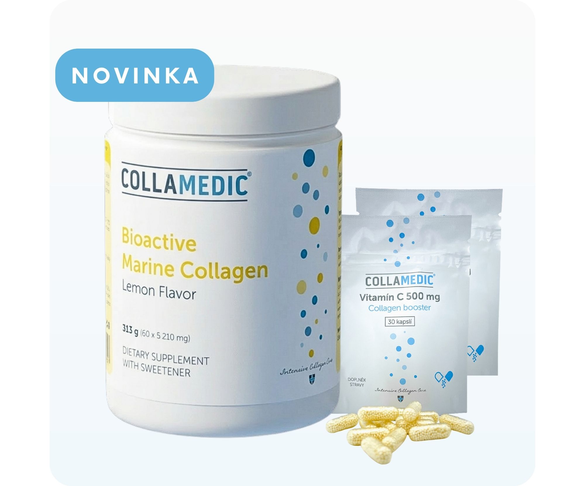 Bioaktivní mořský kolagen COLLAMEDIC® je přírodní doplněk stravy s vysokým obsahem mořského kolagenu, který přináší uživatelům tu nejlepší kvalitu v péči o pleť. Díky obsahu kolagenních peptidů v jedné dávce (5000 mg) je bioaktivní mořský kolagen COLLAMEDIC® v prášku nejsilnějším produktem na českém trhu. Zdrojem kolagenu pro všechny produkty COLLAMEDIC® jsou výhradně divoce žijící ryby z Norska.